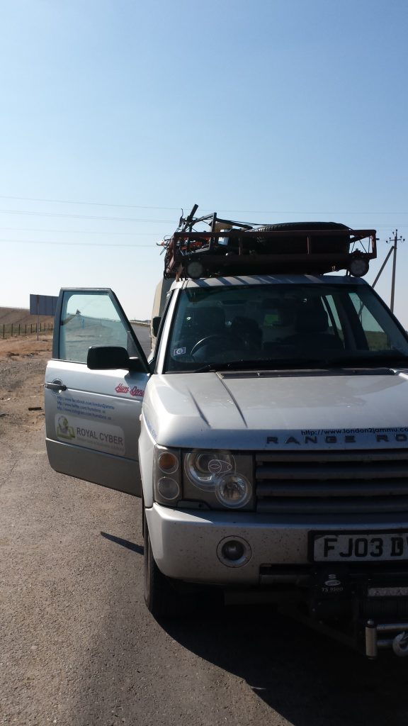Sticking to the plan we started driving towards the Uzbekistan border via Atyrau. We have been driving for miles and miles and road was not getting better even a bit, there were no lights nothing. I was driving literally on the extreme right side of the road as it was all sand and stones instead of potholes filled tarmac. In addition i had to maintain a minimum speed of 80 miles/hour in order to make it on time. And full marks to RR, even without the front suspension and rear suspension stuck in off road mode, it appeared as if the suspension has just gone hard and not missing.